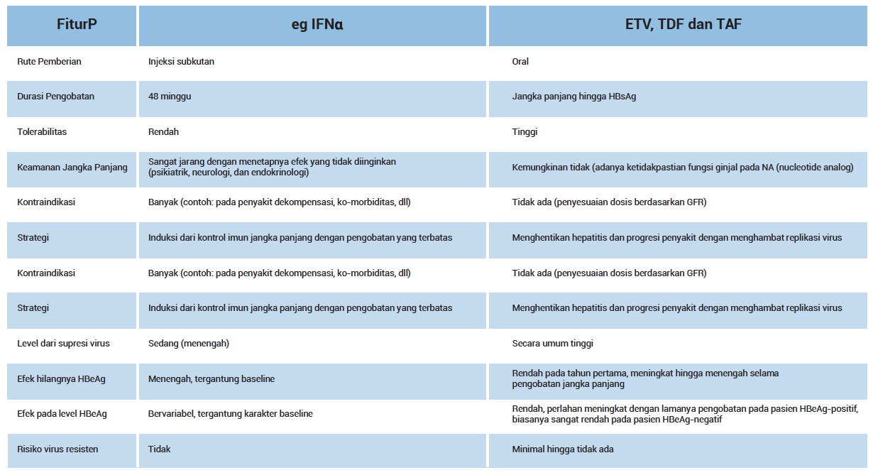 Tabel 2. Perbandingan efikasi interferon dan oral analog nukleos(t)ida pada terapi hepatitis B (adaptasi dari EASL 2017).