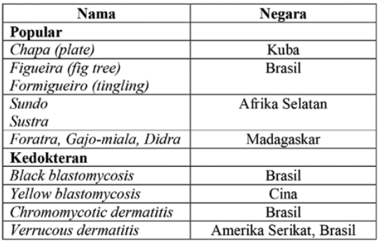 Tabel 1. Nama popular dan istilah kedokteran kromoblastomikosis di dunia1,3,8