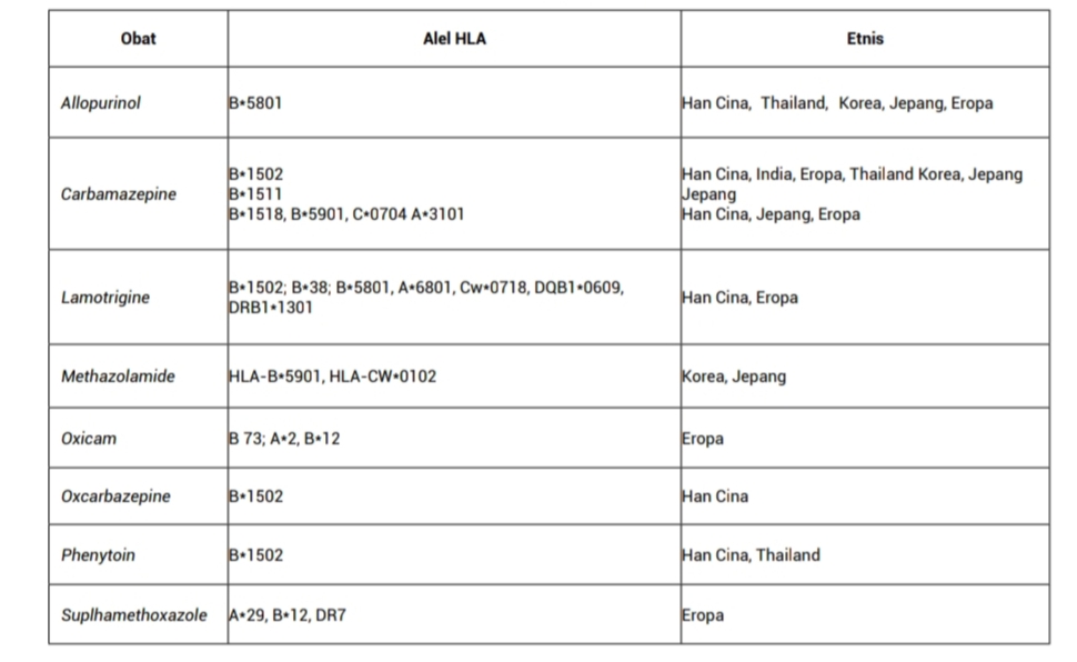 Tabel 1. Farmakogenetik HLA yang berkaitan dengan SSJ-NET11