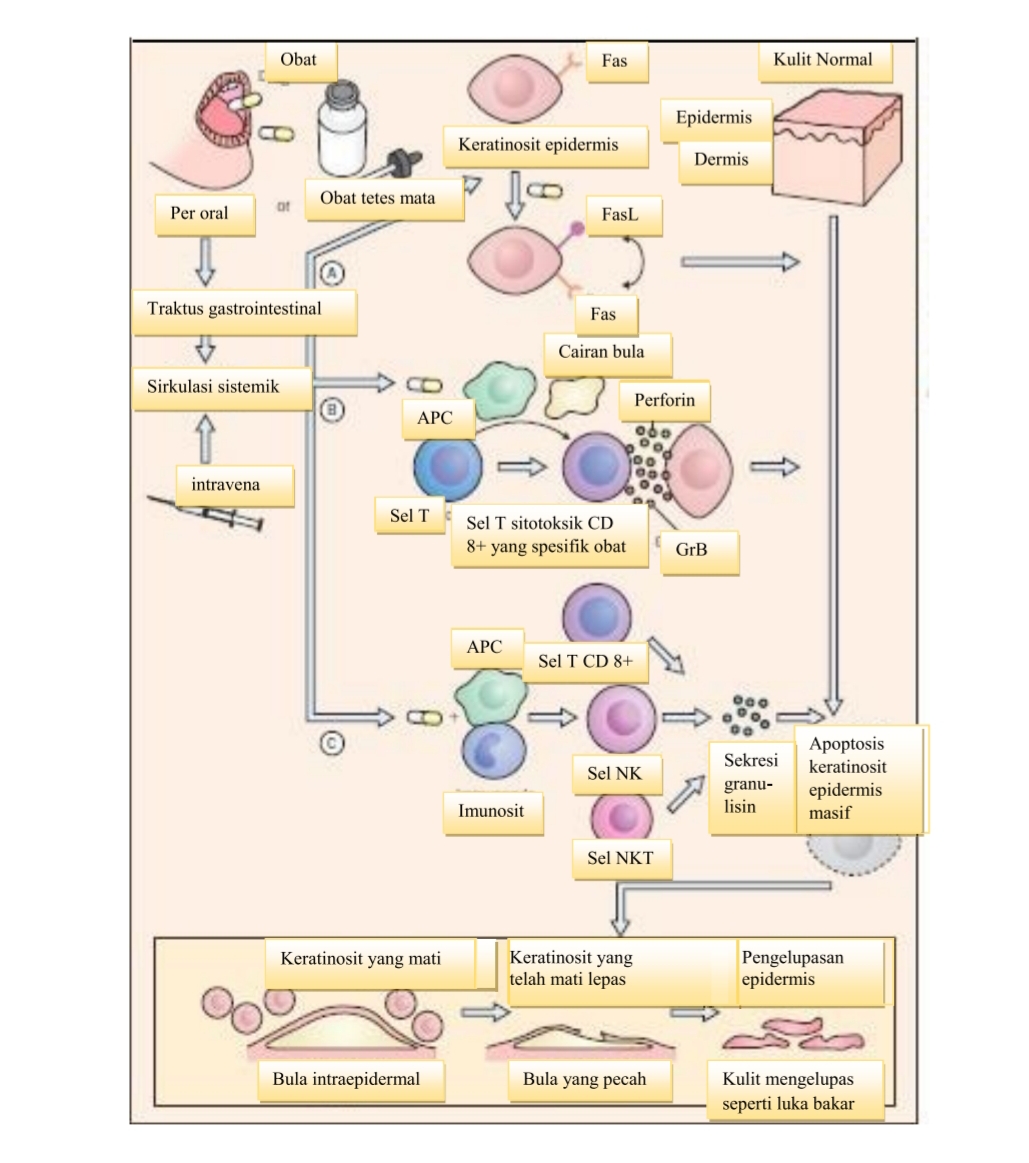 Kehadiran sel T teraktivasi yang mengekspresikan granzim B (GrB) dan perforin telah diamati pada berbagai penyakit imunologi, termasuk penyakit jantung akut, paru-paru, dan penolakan allograft ginjal. Mekanisme ini juga terlihat pada adverse cutaneous drug reactions seperti SSJ dan NET (Gambar 1).