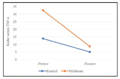 Gambar 1. pretest dan posttest pada kelompok perlakuan dan kontrol (ket. TNF-α: tumor necrosis factor alpha)